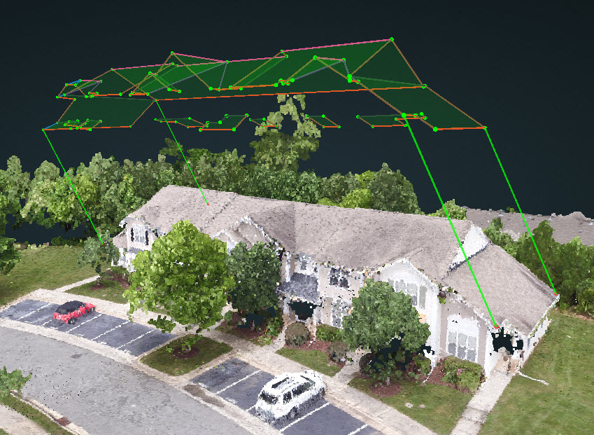- Create a new edge from the imported wireframe to the same point in the point cloud. Then Adjust the endpoint to make sure it is in the accurate location.